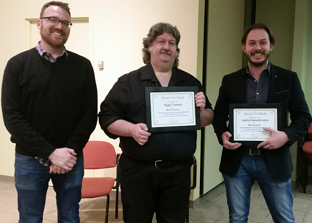 Left to right: Dr.Michael Chaiton, Course Director; Dr.Nigel Turner, a fellow Best Lecturer and an excellent researcher; Dr.Andriy V.Samokhvalov