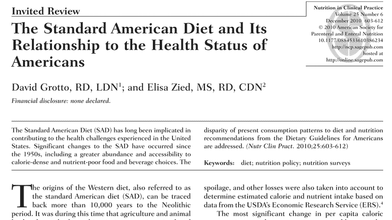 1. Grotto D, Zied E. The Standard American Diet and its relationship to the health status of Americans. Nutr Clin Pract. 2010;25(6):603-612.