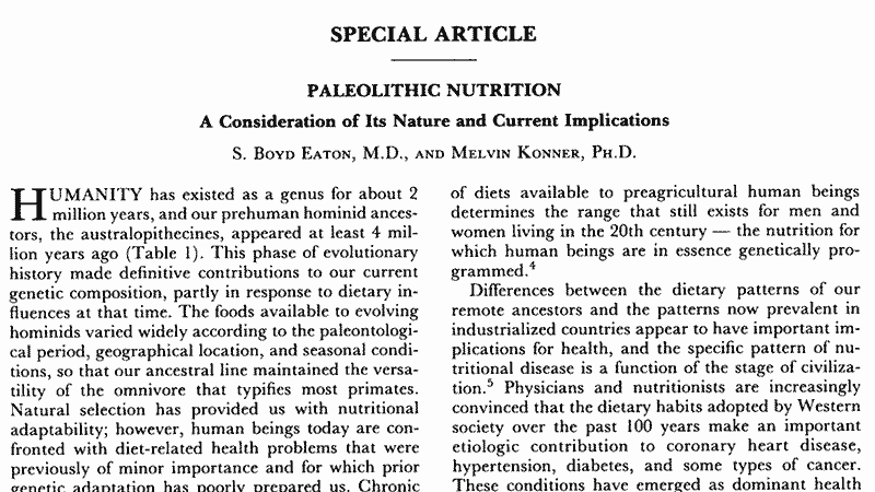 2. Eaton SB, Konner M. Paleolithic nutrition. A consideration of its nature and current implications. N Engl J Med. 1985;312(5):283-289.