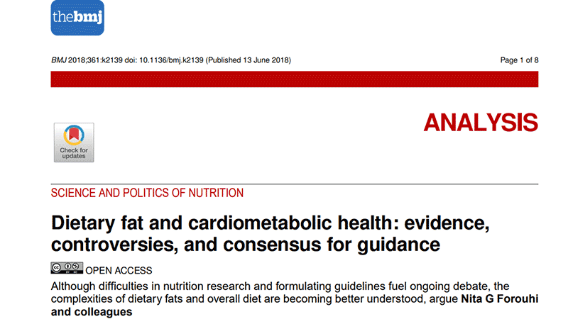 This is an open-access (please see the link below) review published in the BMJ1. The authors are renown experts in the field and provide an excellent review of the existing and emerging evidence of various types of fats consumed and their effects on our health in the context of the dietary recommendations.