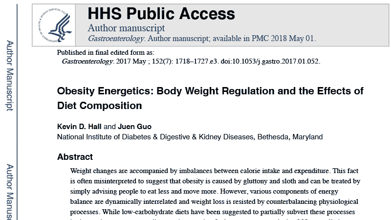 1. Hall KD, Guo J. Obesity Energetics: Body Weight Regulation and the Effects of Diet Composition. Gastroenterology. 2017;152(7):1718-1727.e1713.