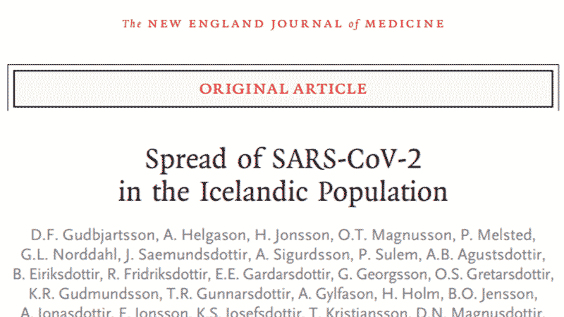 1. Gudbjartsson DF, Helgason A, Jonsson H, et al. Spread of SARS-CoV-2 in the Icelandic Population. New England Journal of Medicine. 2020.