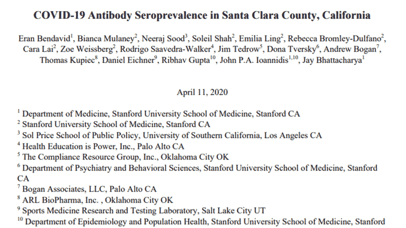 Dr.Ioannidis announced a new “breakthrough” research study1 that aimed to estimate the real number of people infected with coronavirus. The study attracted a lot of attention for obvious reasons and I believe that it must be communicated to the public, but it must be done properly and without sensationalism.