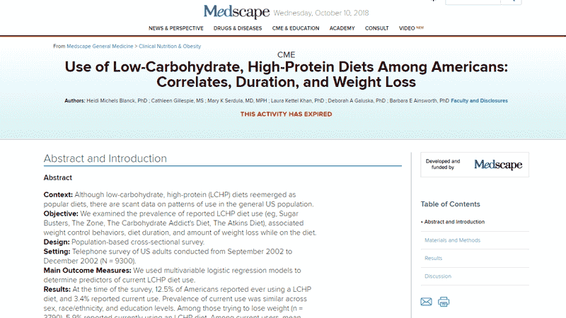 1. Blanck HM, Gillespie C, Serdula MK, Khan LK, Galusk DA, Ainsworth BE. Use of low-carbohydrate, high-protein diets among americans: correlates, duration, and weight loss. MedGenMed : Medscape general medicine. 2006;8(2):5.